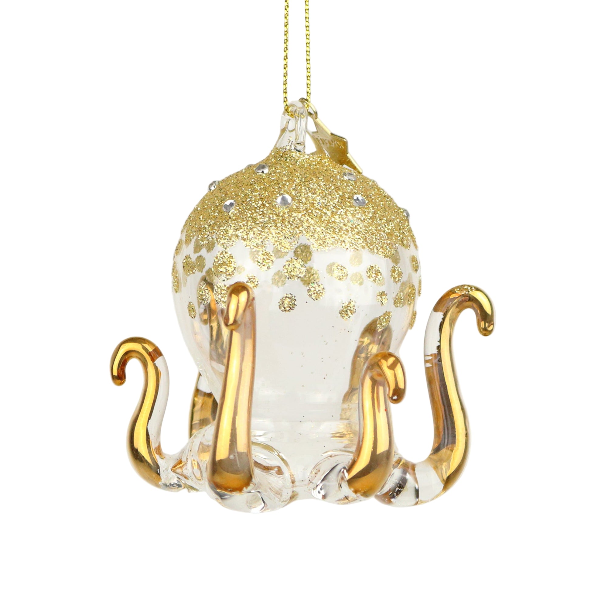 This exquisite Aureate Octopus bauble brings a touch of marine elegance to your decor. Crafted with a refined golden finish, it captures the intricate beauty of the octopus with subtle sophistication, making it perfect as an artistic centrepiece. Handmade, each piece is unique.
