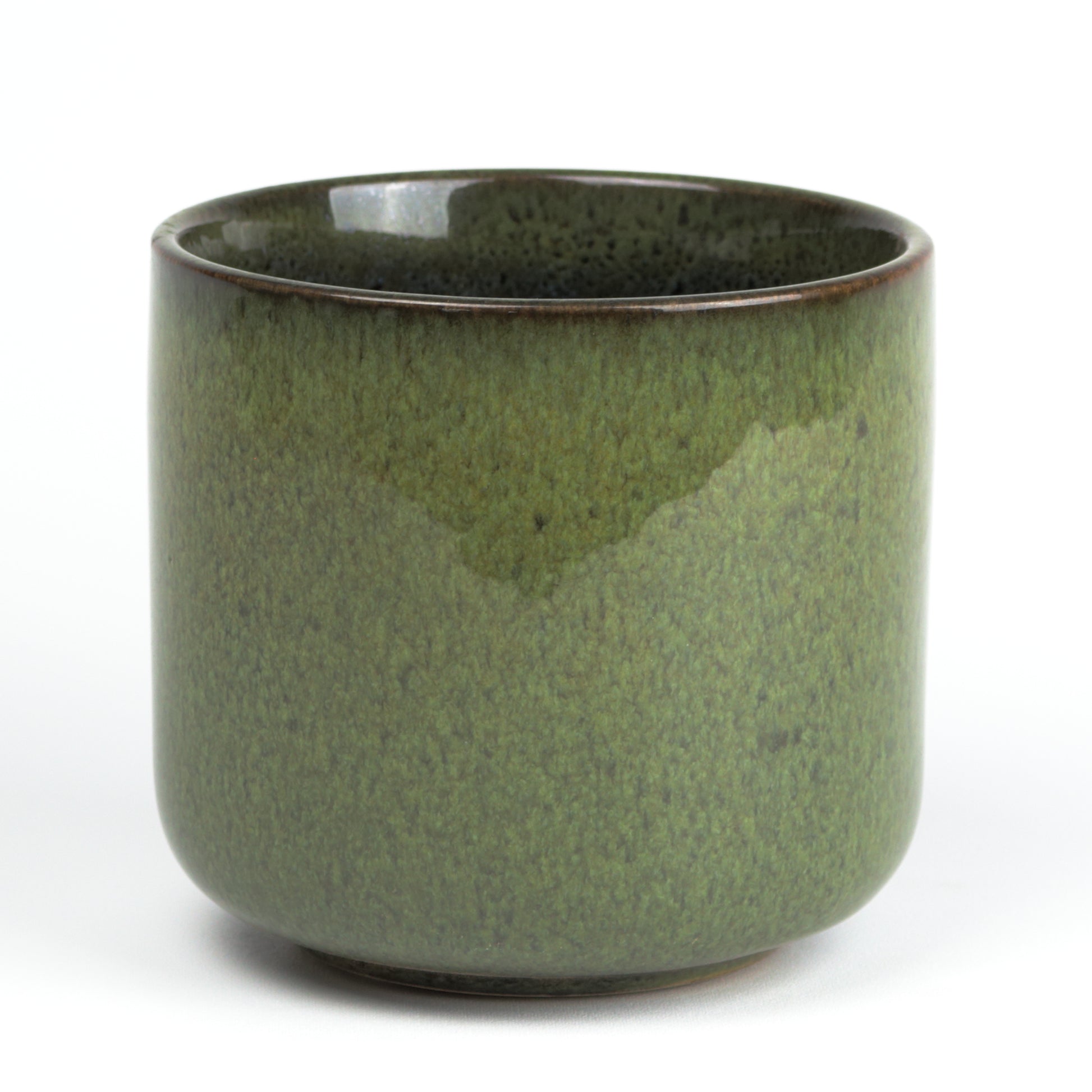 This is a lovely plant pot in a satisfyingly rich forest green glaze, with black and brown speckling throughout. The main body is cylindrical, with a light curve in at the base. The glaze is smooth and bold, making it a standout piece for the home. Sealed, no drainage holes. Handmade, each piece is unique. Available two sizes.