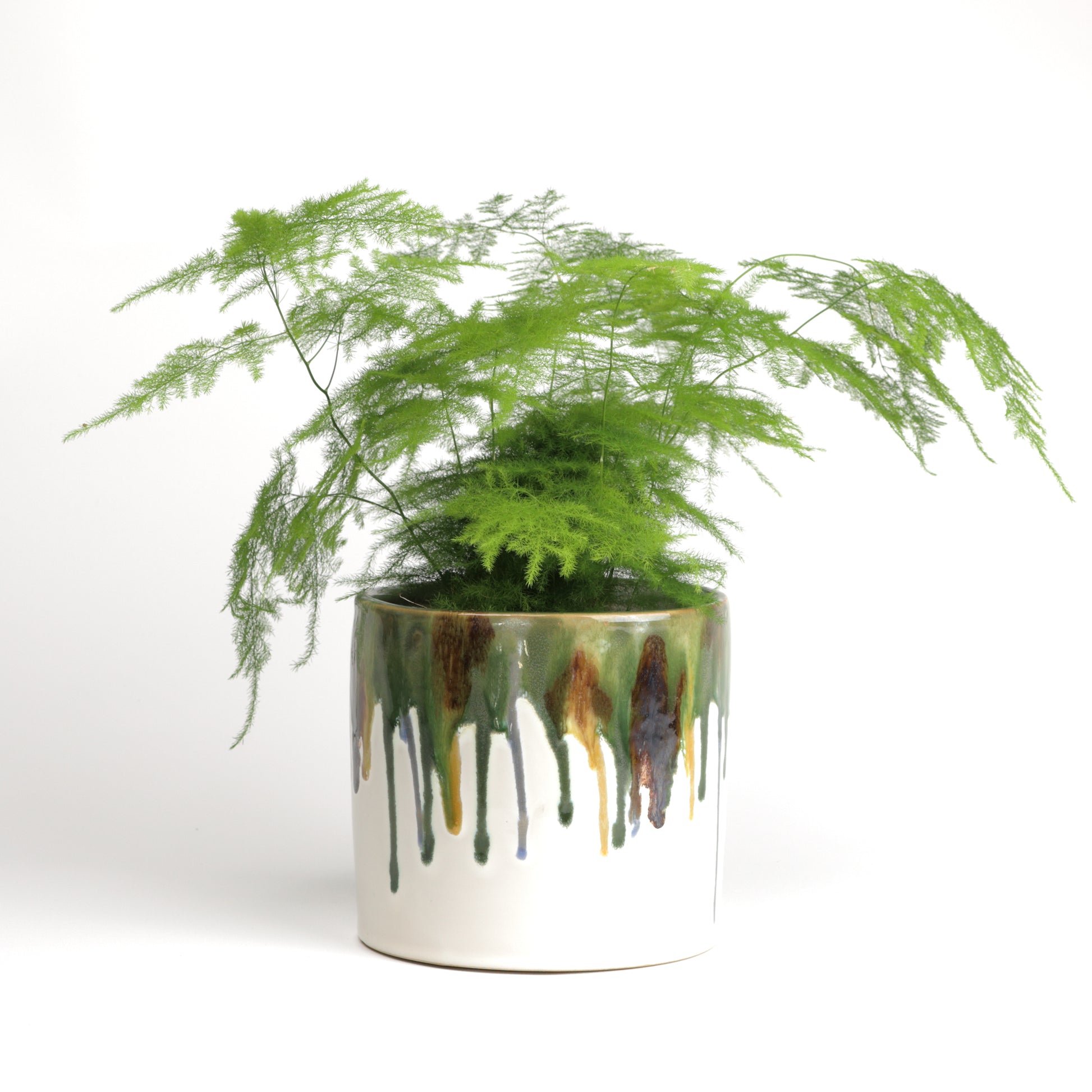 A refined ceramic planter finished with an artisanal dipped paint technique, creating subtle colour variations across its surface. Perfect for displaying houseplants or seasonal botanicals, this versatile vessel brings understated elegance to any interior space. Its contemporary design complements both modern and traditional décor, whilst the quality craftsmanship ensures durability for years to come. Handmade, each piece is unique. Sealed, no drainage holes.