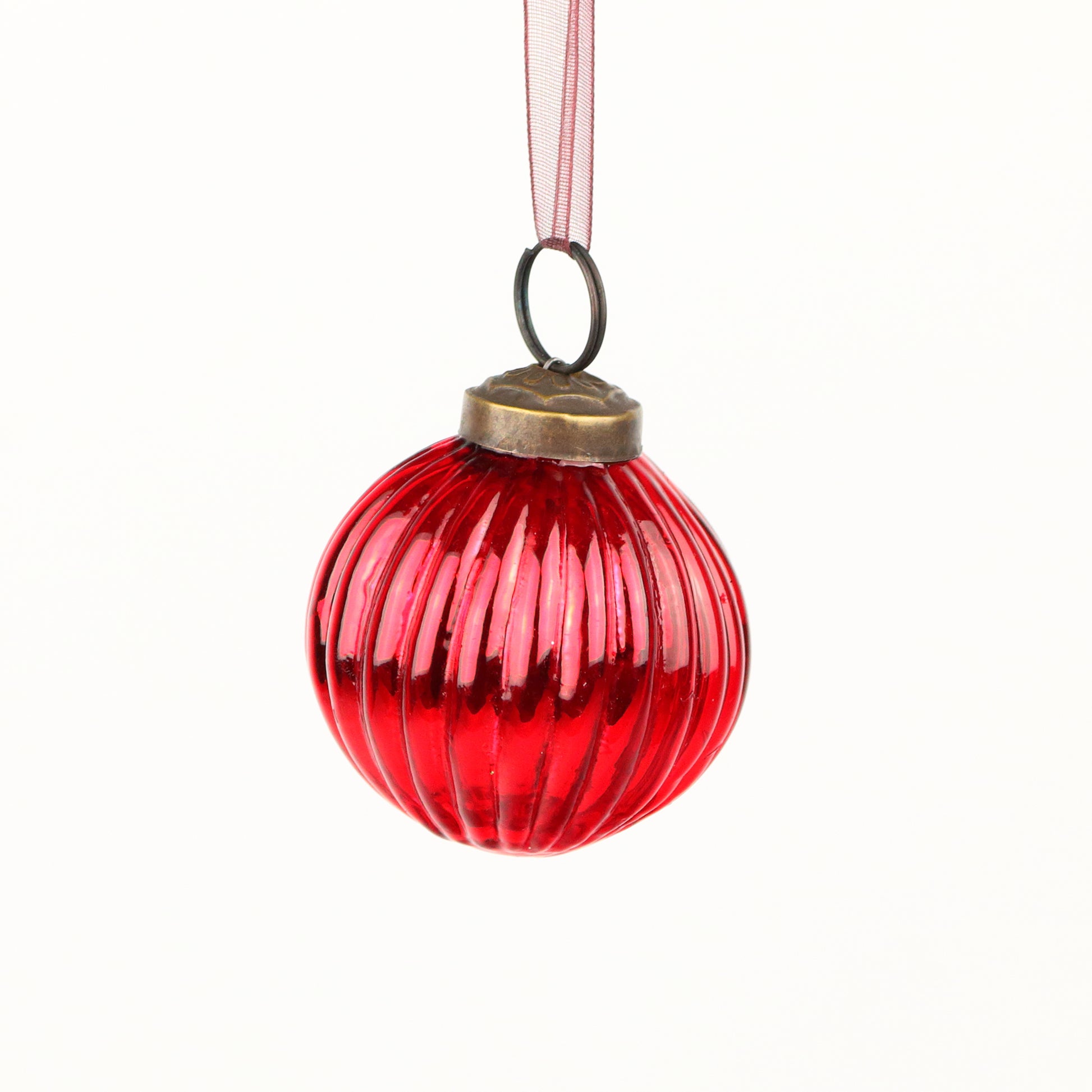 This bauble's refined scarlet finish adds a touch of sophistication, making it an exquisite choice for both modern and classic festive settings. Perfect for adding a timeless shimmer to your holiday arrangements. Handmade, each piece is unique.