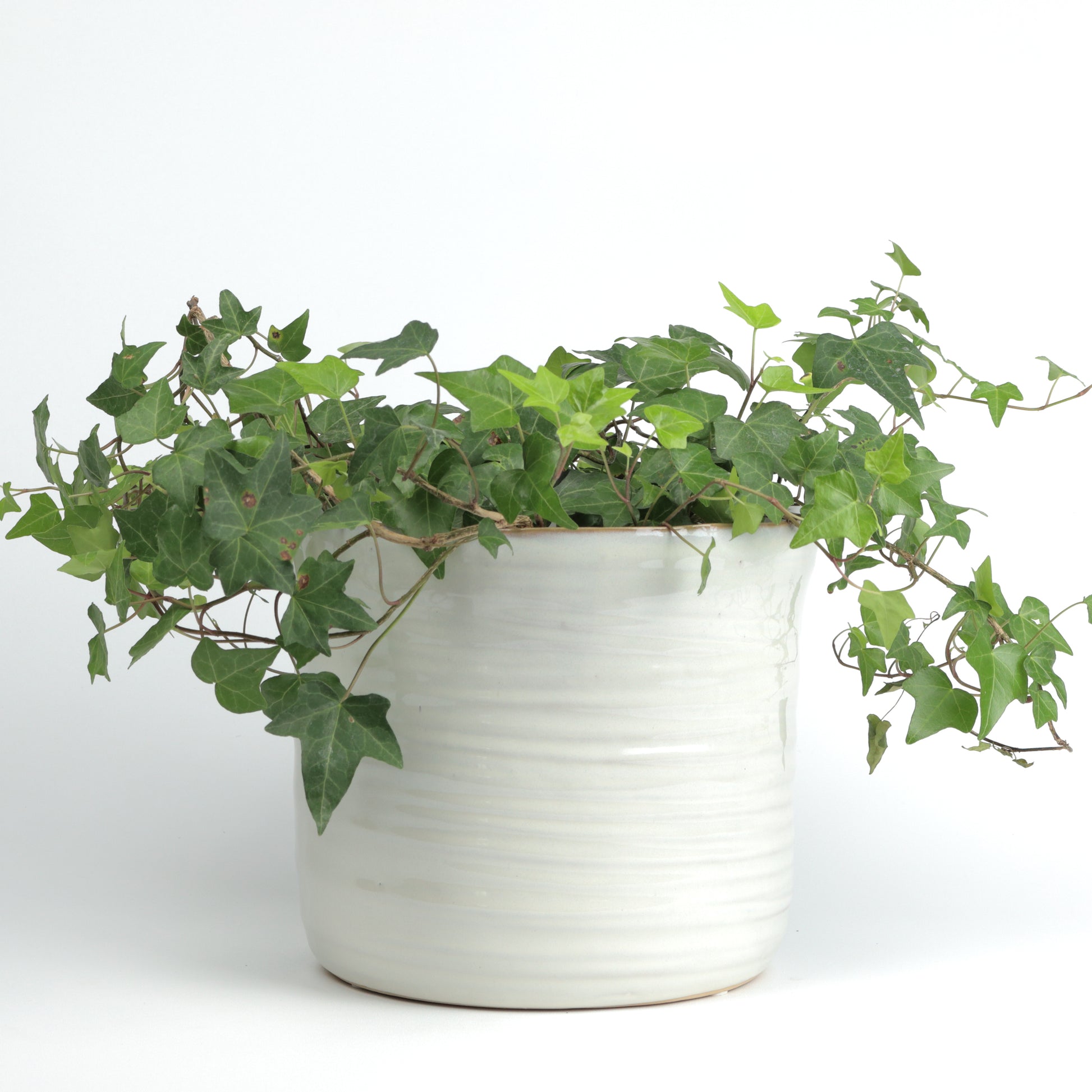 A refined, minimalist pot with a softly hand-formed shape. Its creamy white glaze and subtle rippled texture give it a calm, understated elegance. The slightly uneven rim adds a gentle, organic touch to its simple design. Handmade, each piece is unique. Sealed, no drainage holes.