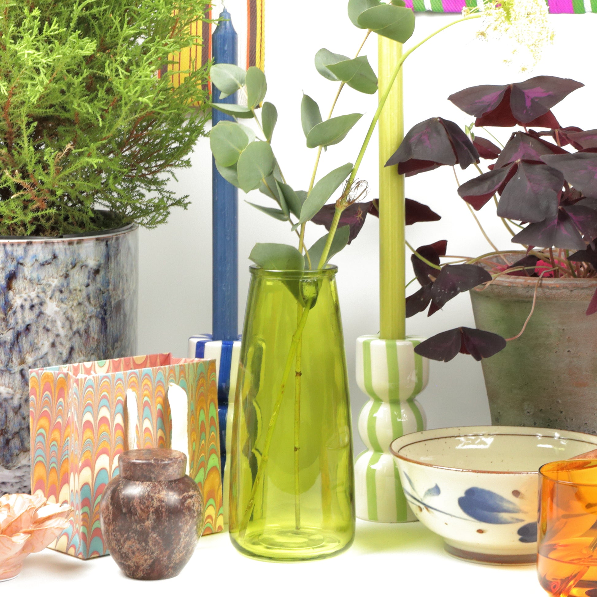 A striking geometric form that brings contemporary elegance to any interior. This smooth cone vase in soft lime captures light beautifully, creating subtle shadows that shift throughout the day. Its minimalist silhouette complements both modern and eclectic spaces, while the refined finish ensures it works equally well as a standalone sculptural piece or filled with fresh blooms. A versatile addition to refined home styling. Handmade, each piece is unique.