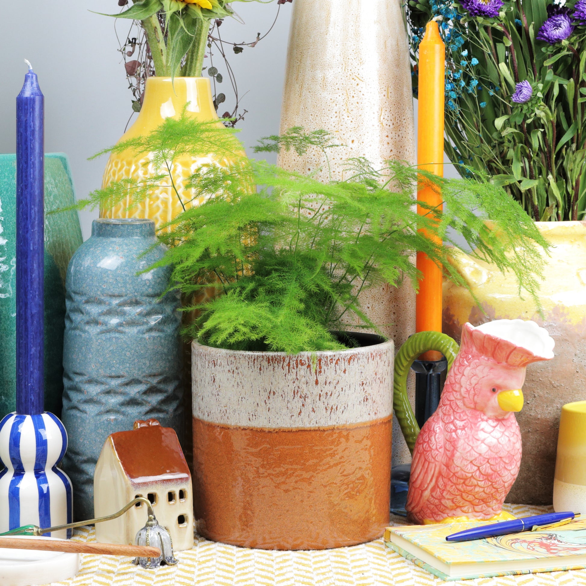 A striking pot featuring a warm base and a softly textured cream glaze above. The two tones blend naturally, creating a rich, earthy contrast that feels both rustic and contemporary. Simple yet full of character, it’s a perfect piece for adding warmth and timeless charm to any interior space. Handmade, each piece is unique. Sealed, no drainage holes.
