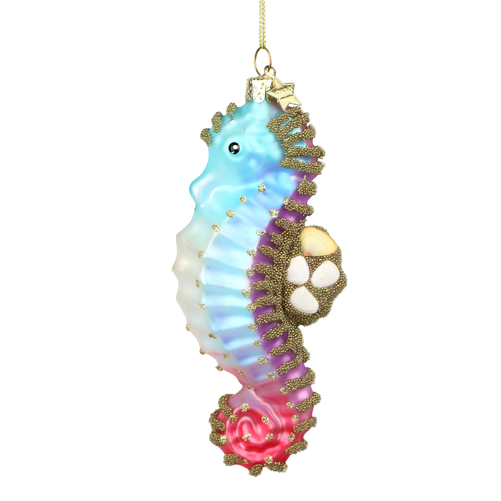 This exquisite Rainbow Seahorse bauble adds a touch of refined elegance to your décor. Crafted with delicate artistry, its vibrant hues capture light beautifully, creating a mesmerizing display. Handmade, each piece is unique.