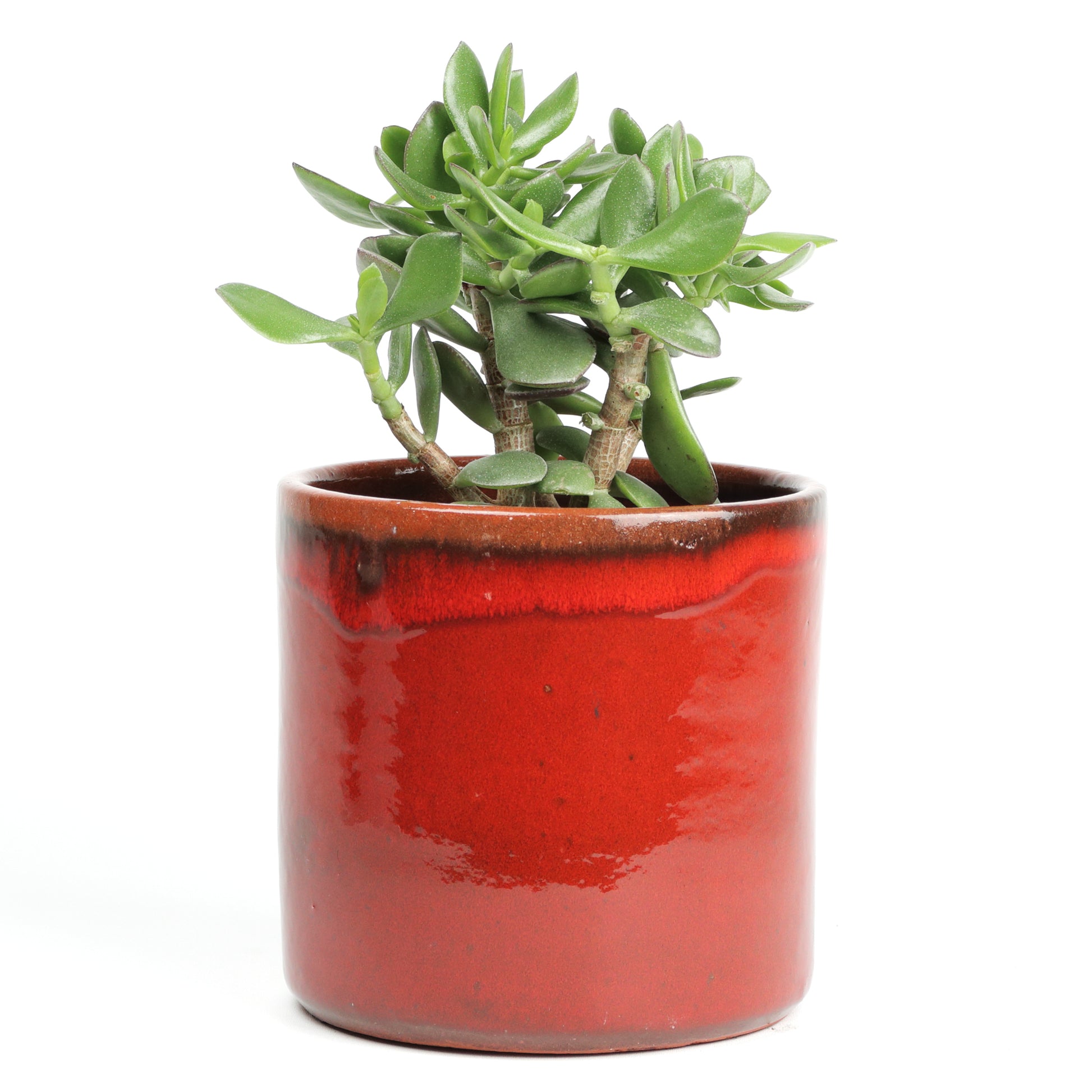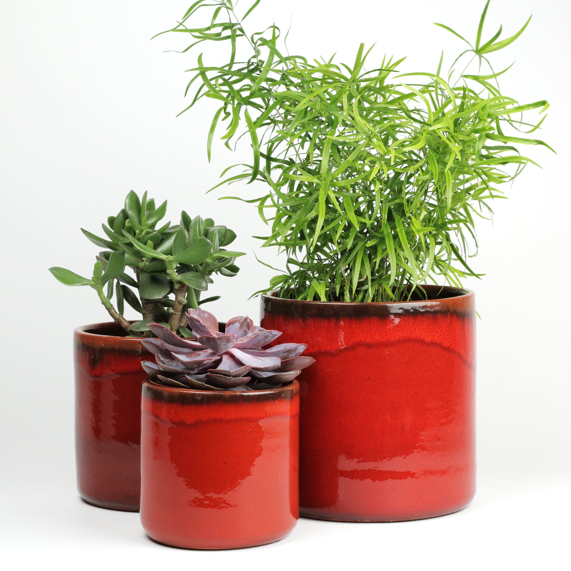A lovely fiery plant pot, the perfect colour pop for any interior. Hand thrown in a cylindrical shape, with thick walls, these sturdy pieces will stand the test of time. Glazed in a vibrant red base, with a black rim, the contrast is beautifully playful. Handmade in Portugal. Sealed, no drainage holes. Available in three sizes.