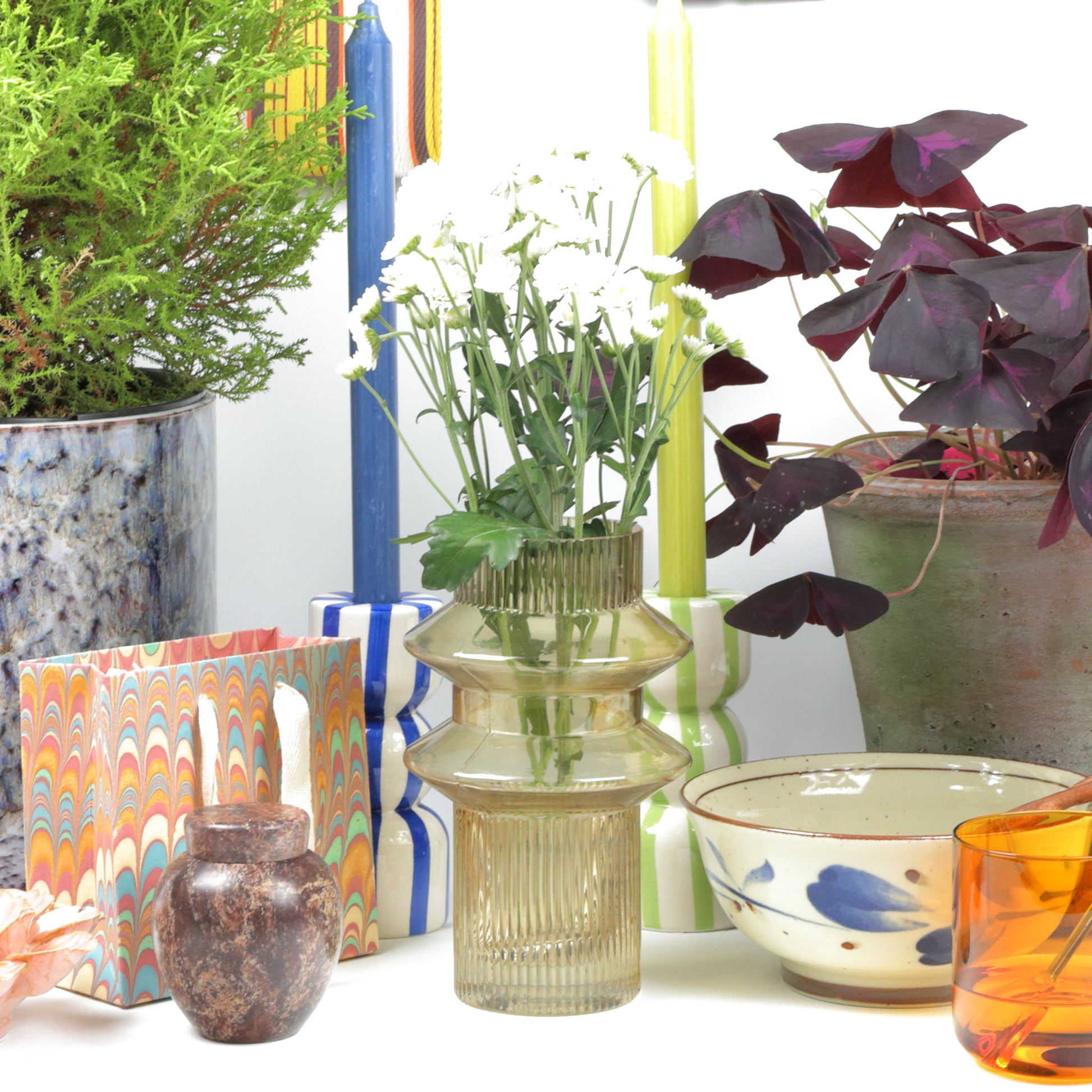 A striking cylindrical vase in warm tan tones, defined by its distinctive double-ring detailing. This sculptural piece brings understated elegance to any interior, whether displayed as a standalone statement or grouped with complementary vessels. The geometric form and refined proportions make it equally suited to contemporary and classic settings. Perfect for showcasing seasonal stems or as an architectural accent in its own right. Handmade, each piece is unique.