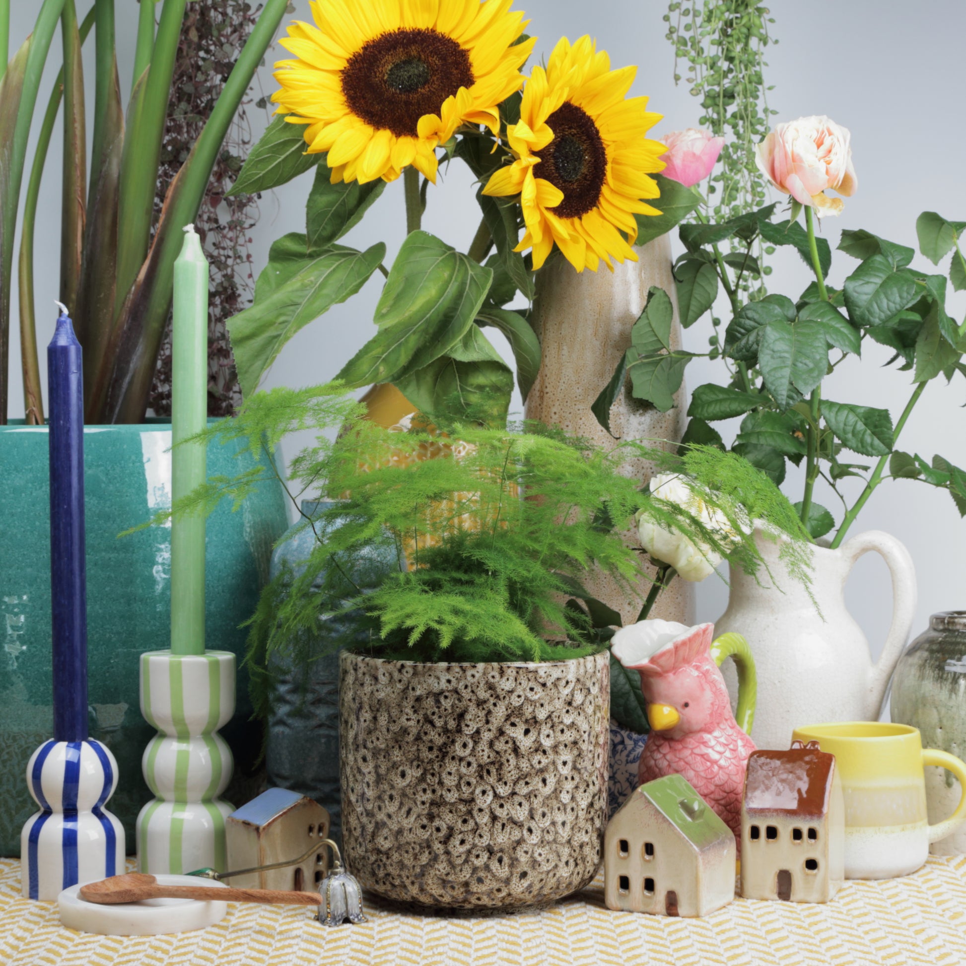 Inspired by the delicate clusters of frogspawn, this striking cylinder planter features an intricate spotted pattern that brings organic elegance to any interior. The generous proportions provide ample space for substantial plants, whilst the contemporary cylindrical form complements both modern and eclectic décor schemes. Handmade, each piece is unique. Sealed, no drainage holes. Available in two sizes.