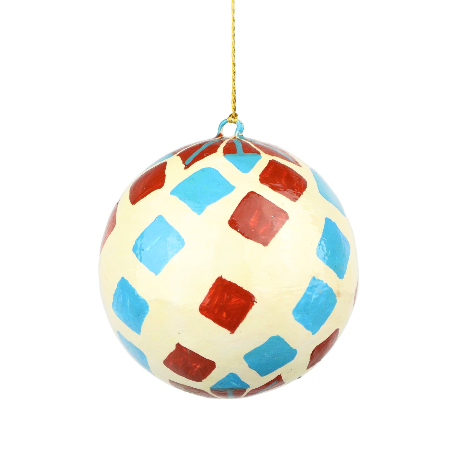 This bauble brings understated elegance to your festive decorations. Its raw coloured squares complements a refined holiday palette, enhancing the ambiance with a gentle, polished glow. Perfect for adding a subtle touch of sophistication, this bauble is an exquisite choice for elevating your seasonal decor. Handmade, each piece is unique.