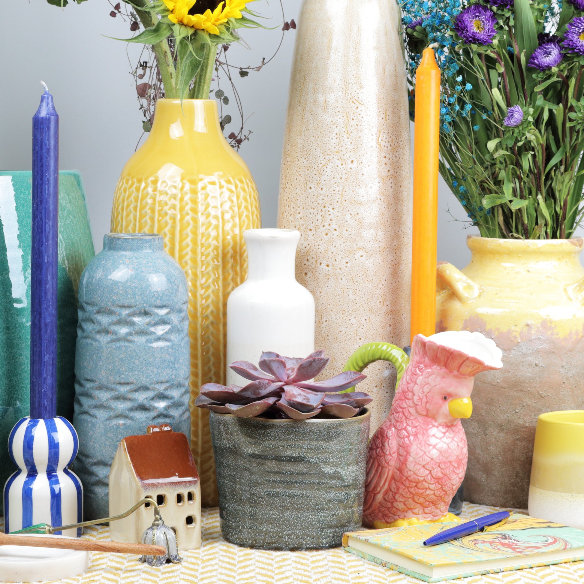 An organic and characterful plant pot with a soft, hand-formed silhouette. Its subtly uneven rim and textured surface give it a beautifully natural feel, as though shaped by flowing water. The glaze blends muted tones of grey, green, and brown, with a gentle speckle that adds depth and movement. Handmade, each piece is unique. Sealed, no drainage holes. Available in two sizes.